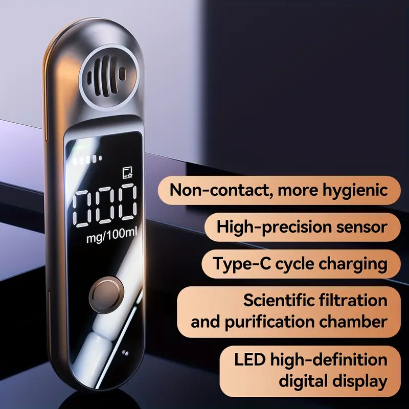 Portativ Rəqəmsal, Lithium Batareyalı Şəxsi İstifadə üçün Dəqiq Ölçmə funksiyalı Alkoqol Aşkarlama Cihazı | Müasir dizayn | Davamlı dizayn, spirt test cihazı. usb ilə doldurula biləndir.