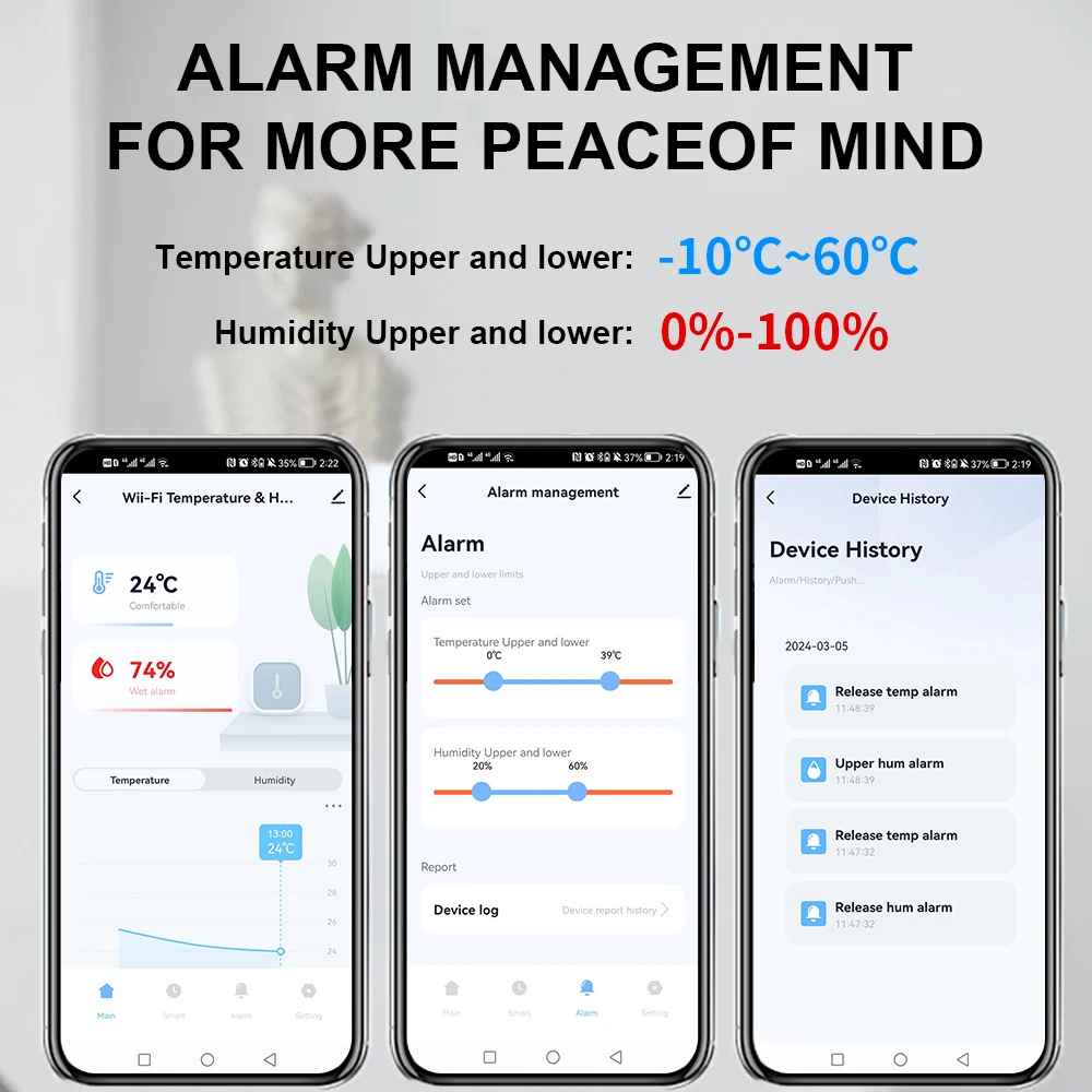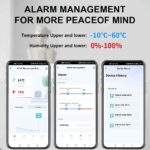 Умный датчик температуры и влажности Tuya WiFi — это устройство для умного дома на батарейках, совместимое с Alexa и Google Home. Он обнаруживает температуру и влажность окружающей среды с регулируемой чувствительностью, предлагая настраиваемый цикл отчетов и синхронизацию с приложением. Благодаря компактному дизайну он работает при температурах от -10°C до 55°C и уровнях влажности от 10% до 90%RH. Датчик включает функцию напоминания о низком заряде батареи и поддерживает несколько систем умного дома.